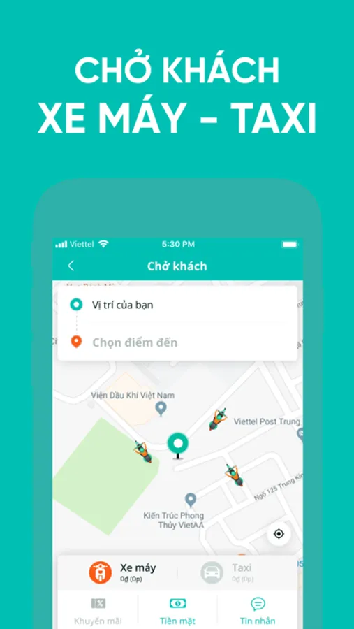 * Xe máy: dịch vụ đặt chuyến đi bằng xe máy, mang lại sự thuận tiện khi phải di chuyển tới những con ngõ trong thành phố;