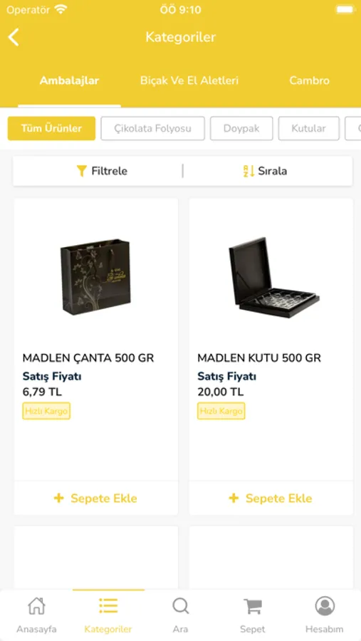 * Ürün kategorilerinde filtreleme yapabilirsiniz.
