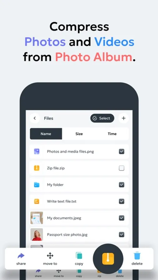 Now it's easy to extract your all videos, songs or also images into one folder with using this Zip & Unzip Files - Extractor application. this application has Convenient User Interface to Zip your file in one folder and compresses it to share on social media easily with anyone.it's also easy to unzip whenever you want.