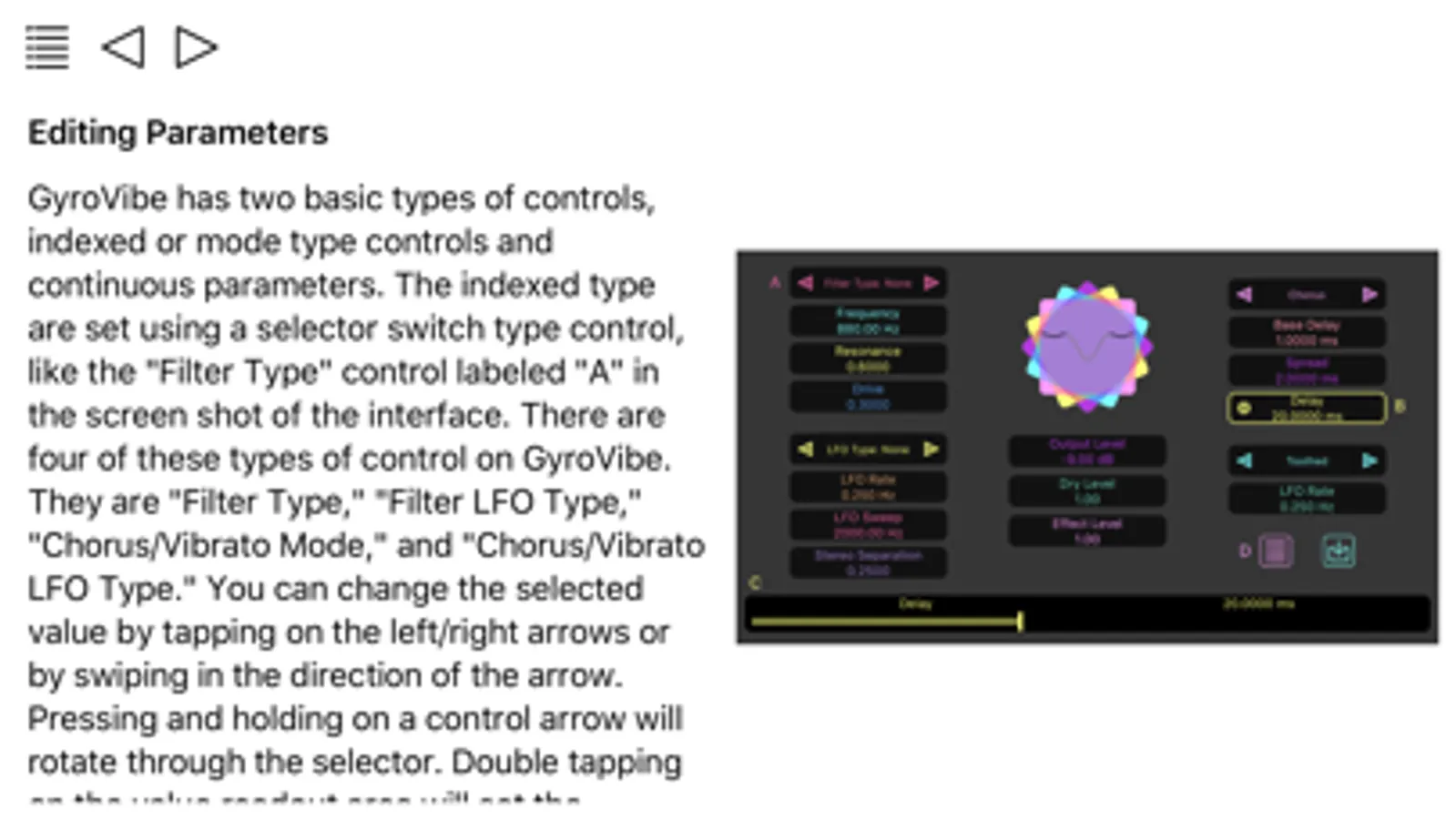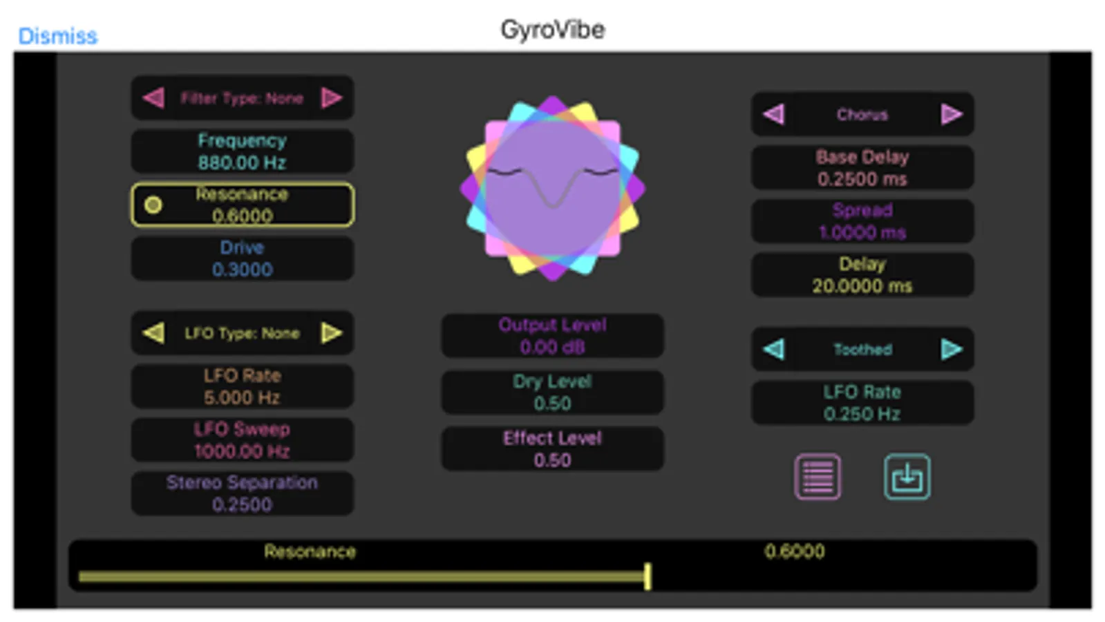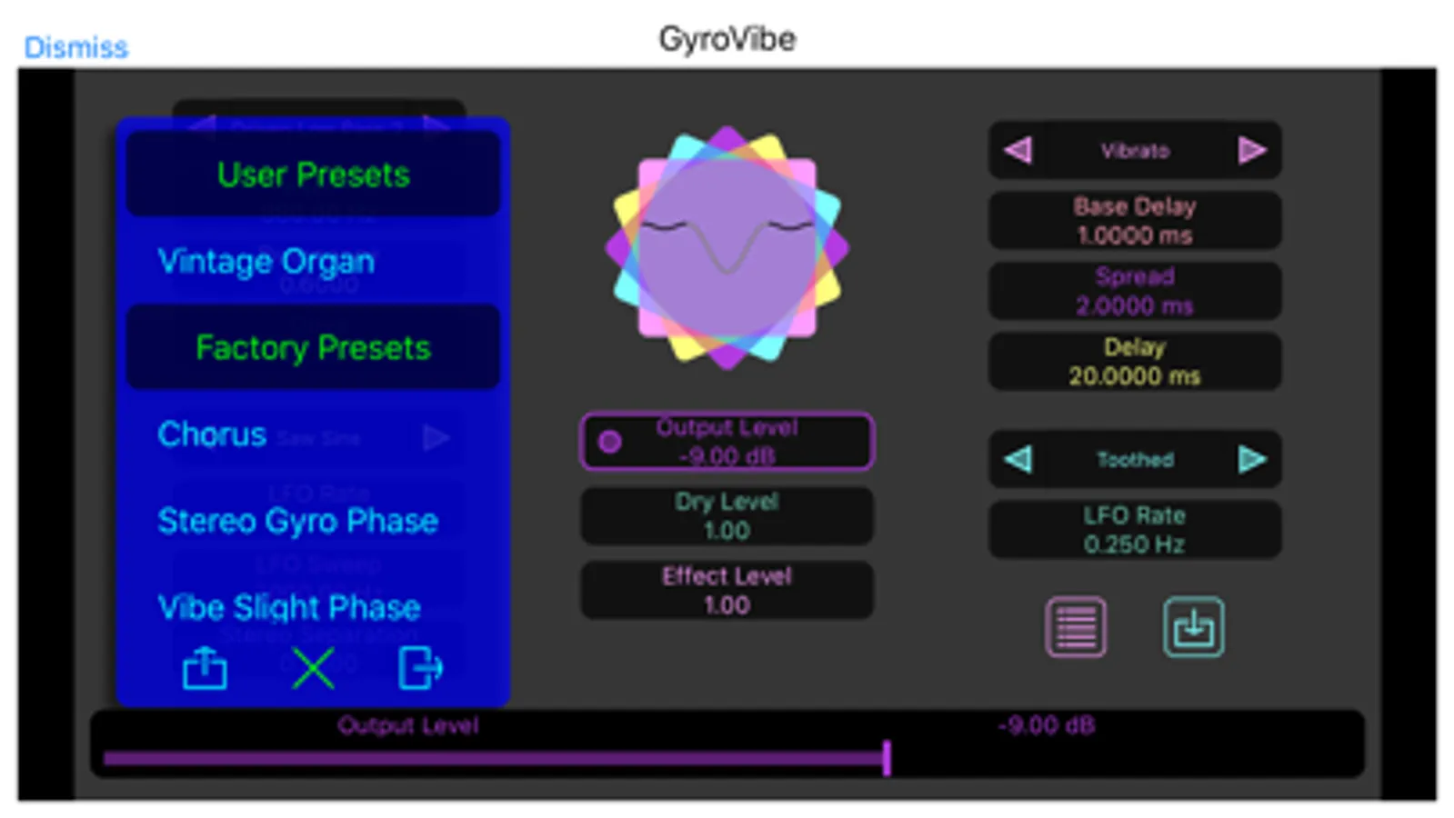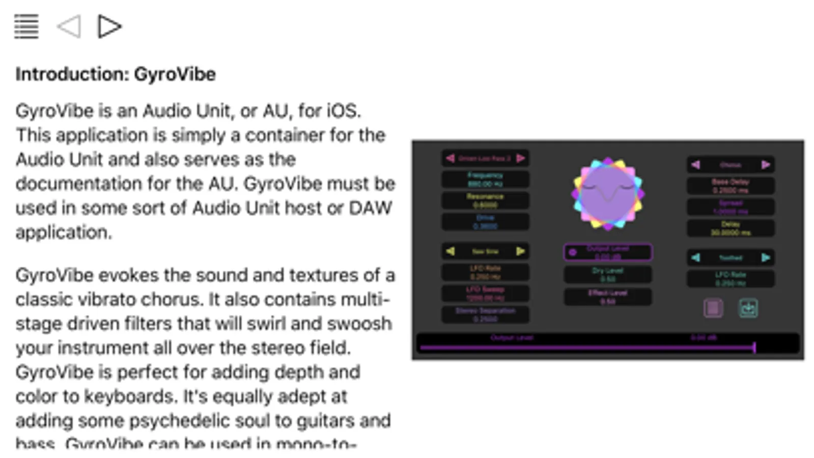 GyroVibe is an Audio Unit, or AU, for iOS. This application is simply a container for the Audio Unit and also serves as the documentation for the AU. GyroVibe must be used in some sort of Audio Unit host or DAW application.
