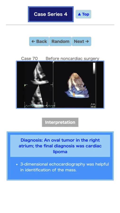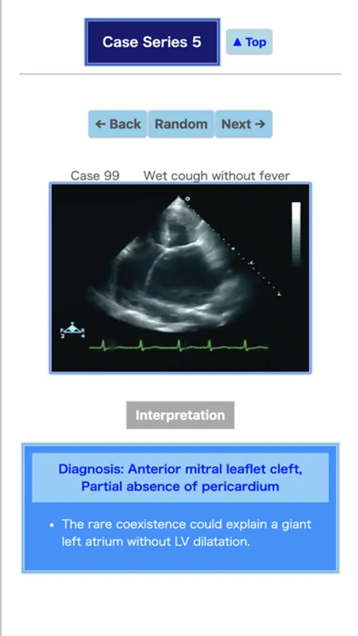 Echocardiography says, "Seeing is believing." This app is designed to display the beauty of echocardiography. More than 100 cases were selected from tens of thousands of echocardiographic examinations. All data are based on weekly echocardiographic conferences at Matsushita Memorial Hospital.