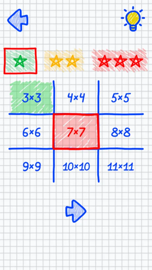 It’s colored tic-tac-toe, hand-drawn style in the form of a school notebook.