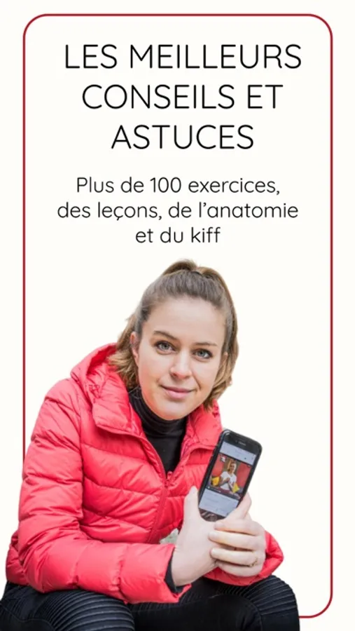 L’appli comprend une centaine d’exercice organisé en chapitre pour t'exercer, comprendre ton corps, utiliser des petits astuces. On a voulu faire une application très intuitive, drôle, sympa dans laquelle on se sent bien et qui permette de vraiment faire des progrès.