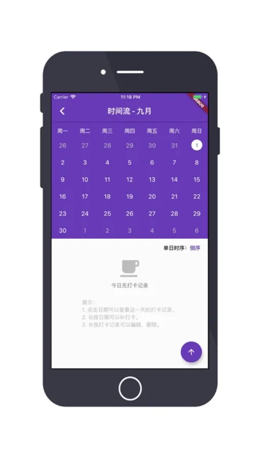 可以点击日历跳转到某一个的记录,查看每一天做的事情。时间流里可以补打卡记录、编辑打卡记录、删除打卡记录。时间流分为总任务和单任务,区分查看。