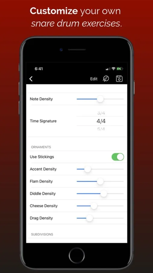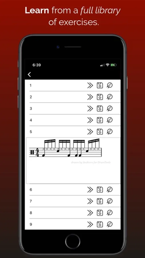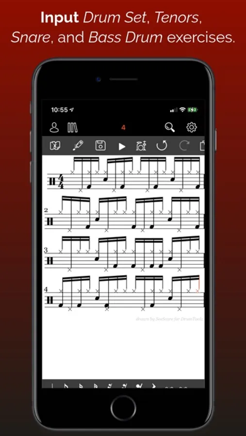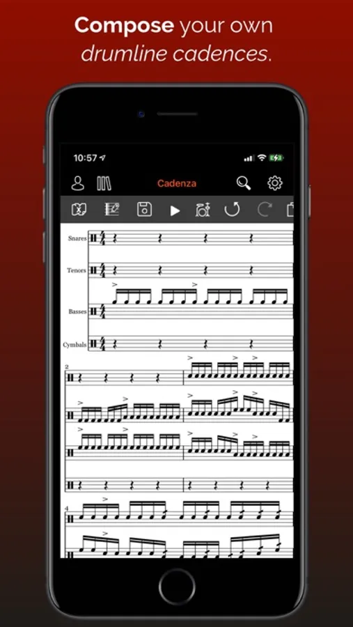 Compose cadences on the go! Choose from snares, tenors, bass drums, cymbals, and even drumset if you want. In a league of its own, DrumToolz also lets you manually input exercises for drum set, marching snare, tenors, and bass drums while generating new creative ideas using what you input, all shown on an editable music score. You can also upload your beats to your social profile, play what other users are playing, save rhythms, practice snare drum rudiments, and learn from a full library of dynamic exercises for both snare drum and drumset! It's perfect for all skill levels, from beginner to extremely advanced, drum wizards.