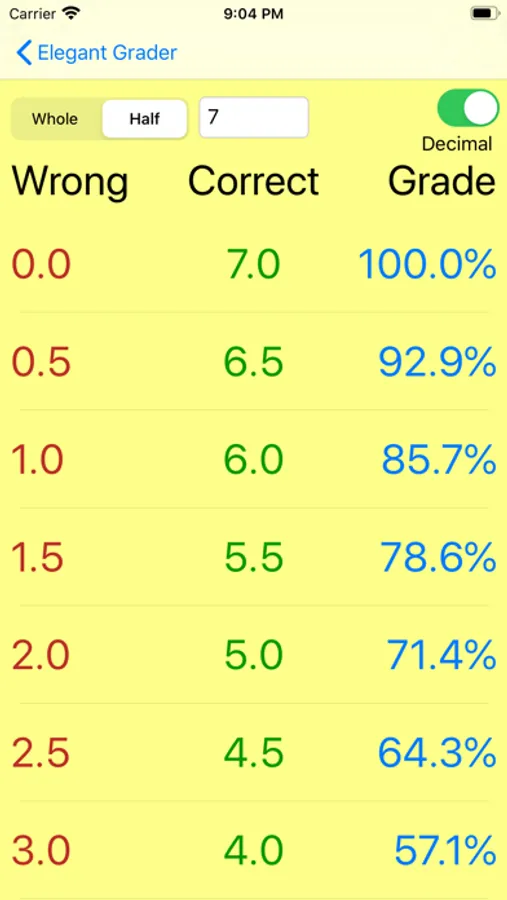 Teachers—how quickly can you grade papers or tests? Students—how many points do you need correct on an assignment/test to get the grade you want? What grade do you need in a certain class to achieve a desired GPA? Use Elegant Grader and you’ll be able to achieve these tasks in no time! Elegant Grader is a simple and easy-to-use app that provides a score calculator and GPA calculator.