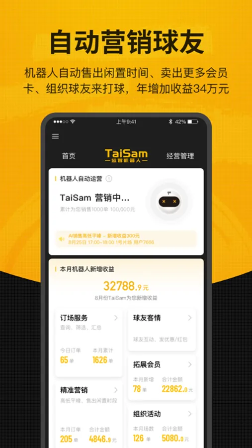 自动球友营销:机器人自动把闲置时间售出、卖出更多会员卡、组织球友来打球等,年新增收益34万元