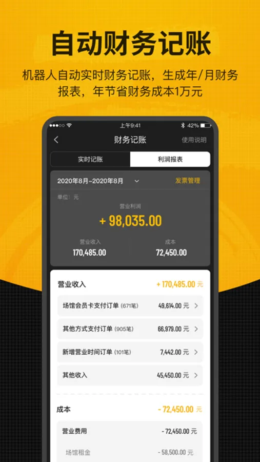 自动财务记账:机器人实时记账,生成月、年财务报表,年节省财务成本1万元
