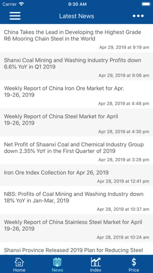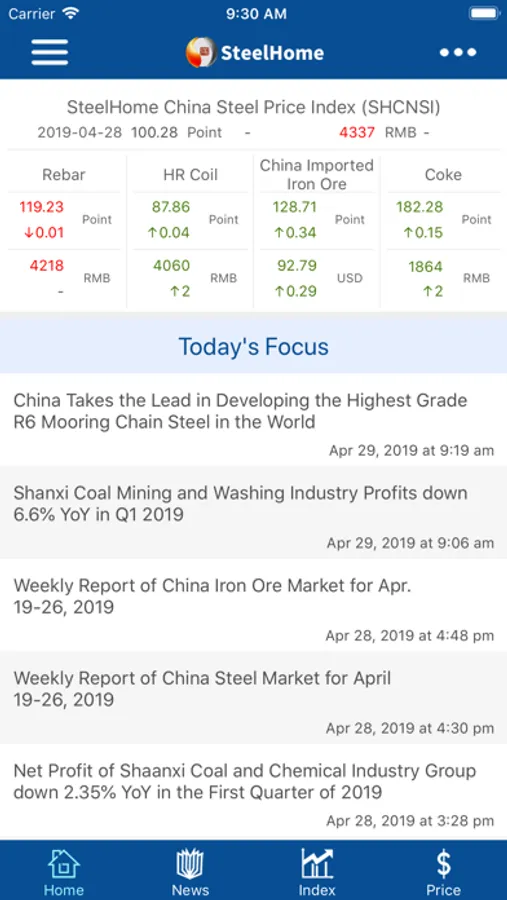 Focusing on the Chinese steel market, the SteelHome app for phone gives you access to the news, prices and statistics of steel, raw material, coke/ coal, nonferrous metal etc. Containing premium service of news, prices and data, the app can be free downloaded, but requires trial or subscription access, though a small selection of free articles.