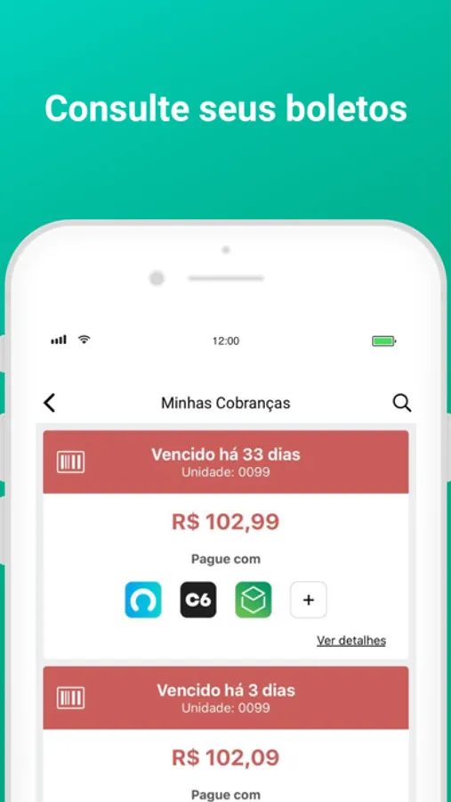* Visualizar os boletos em aberto e liquidado de sua unidade;