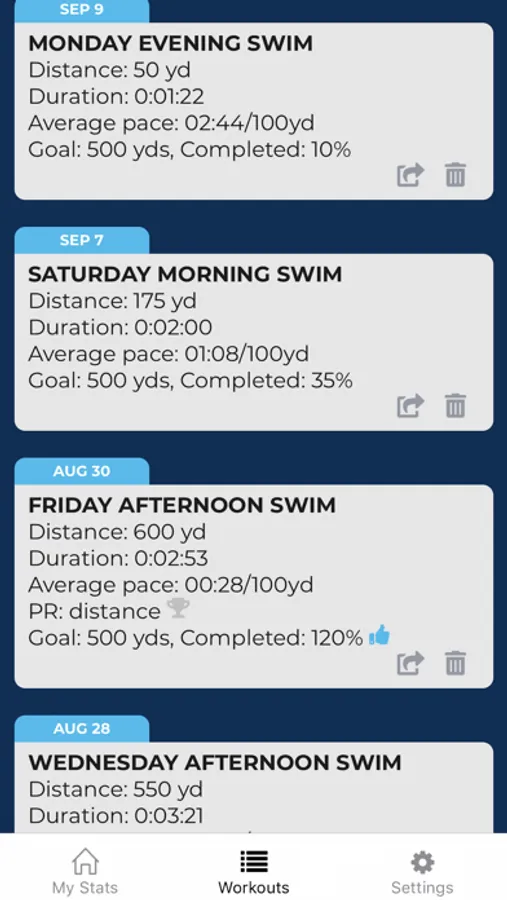 Automatically keeps track of your personal records of swim distances, longest swims, etc.