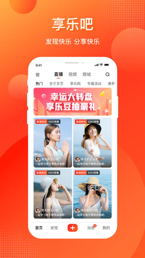 享乐吧APP以家庭生活方式为导向,覆盖“衣-食-住-行-吃-喝-玩-乐”,凭借直播+电商模块及一体化的兴趣社交属性,以文化、旅游、娱乐、社交、学习为核心内容,打造在生活、购物、娱乐、健康等方面的家庭幸福生态平台。