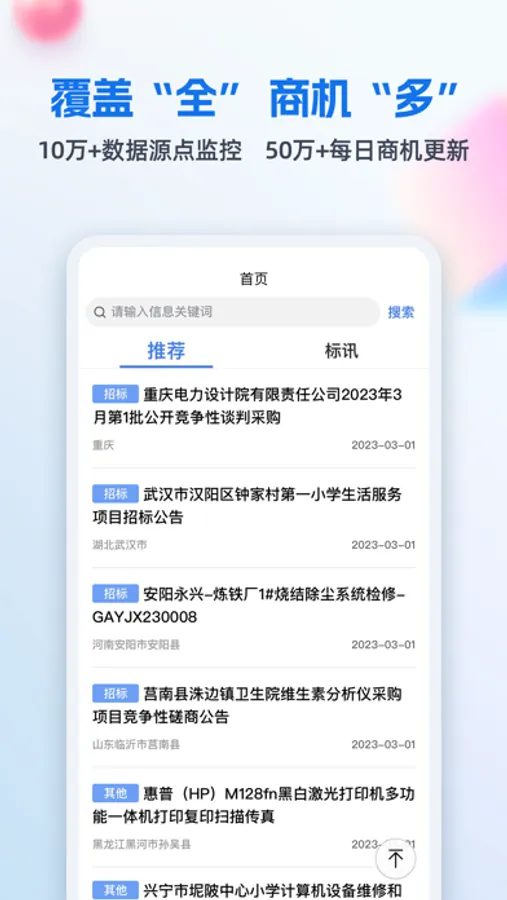 招标网是一款集招标信息查询、订阅与推送于一体的招投标行业APP,致力于为用户提供全国范围内的招标采购数据服务。