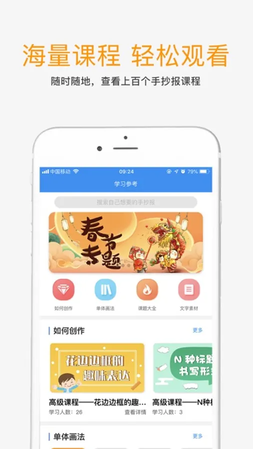 1.随时随地,查看上百个手抄报课程