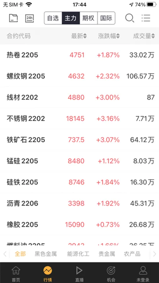 2、行情数据:涵盖国内主要期货商品行情信息。