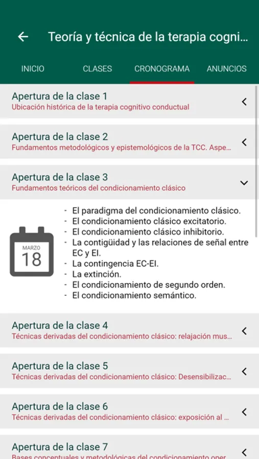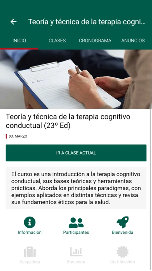 Con esta aplicación podrás acceder a todos los cursos a distancia del Centro de Terapia Cognitivo Conductual y Ciencias del Comportamiento desde tu celular o tablet. Te permitirá visualizar las clases audiovisuales, descargar materiales, resolver ejercicios y realizar consultas a través de los foros.