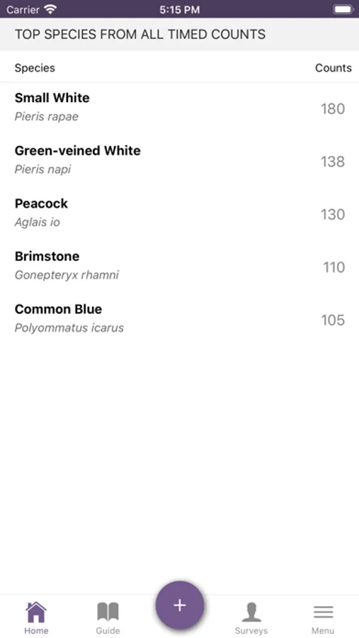 • ‘Record as you go’ functionality for incremental listing and counting butterflies