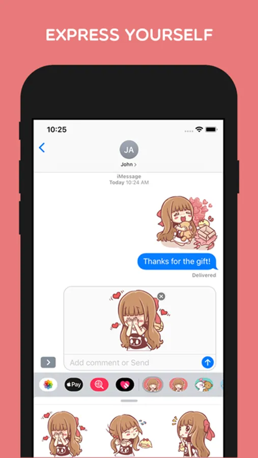- Or Tap, Hold, and Drag the sticker to the message bubble you want to put it onto and place it where you want it.