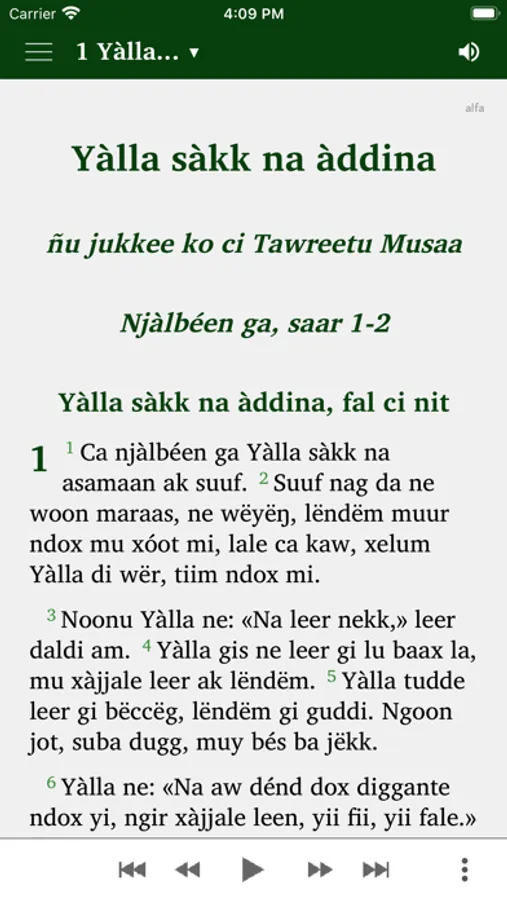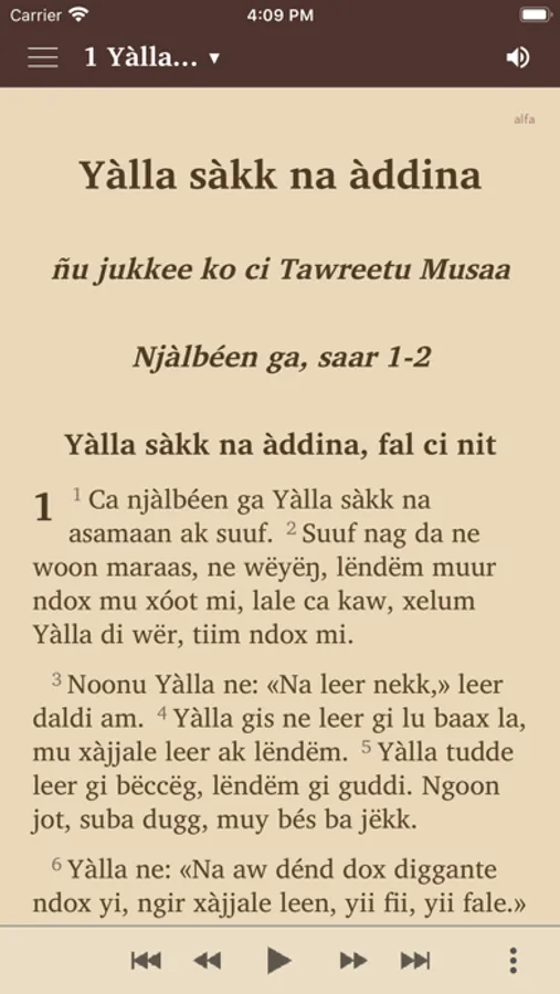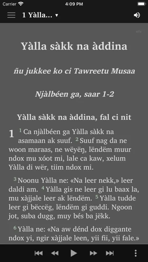 L'appli Ab Jukki ci Kàddug Yàlla contient 18 histoires chronologiques de la bible en langue wolof en écriture romain et en écriture arabe avec narration.