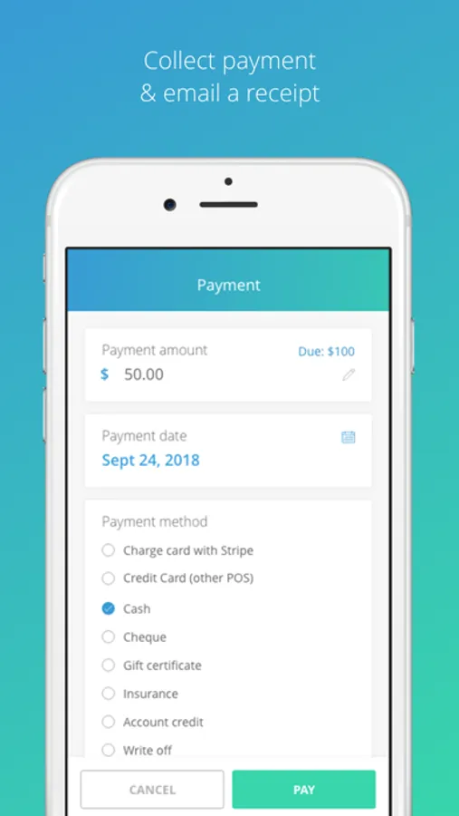 With ClinicSense, your invoices are automatically created for you. Simply mark the invoice as paid then email the receipt from within the app.