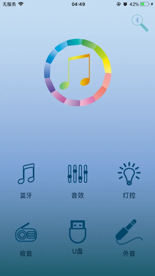 The APP is a media player, used for interactive control of Bluetooth mediaplayer,Bluetooth speakers, Soundbar etc. Gives the user full control over the Music Play, Controlling the source of music(UDisk, Bluetooth Music, FM, AUX), Equalizer control, Color control of the light, Record control Box, FM and AUX control.