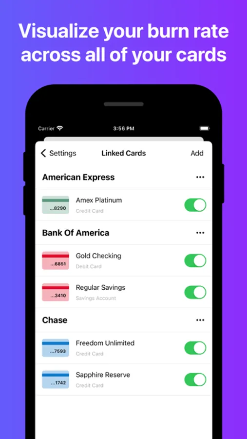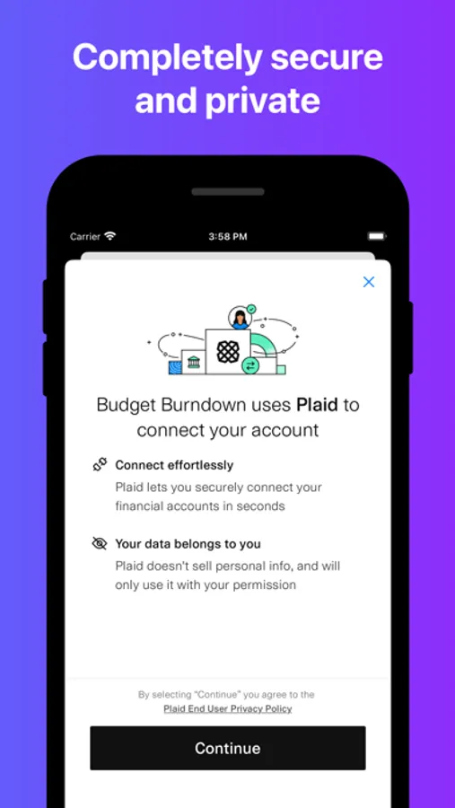 Your information is completely safe. You'll use Plaid to link your cards. Your credentials are end-to-end encrypted and completely inaccessible to the app.