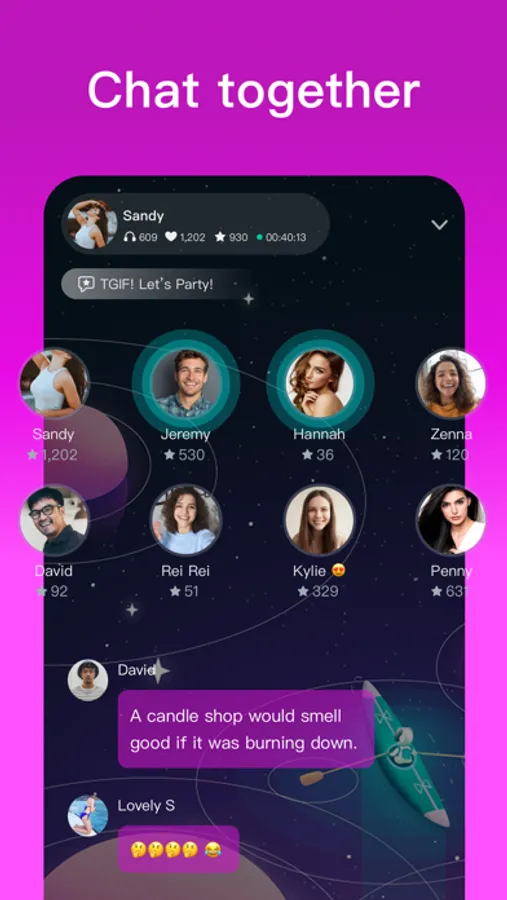You can start a live stream with up to 8 friends, or chat with new potential friends anytime, it’s a great way to build friendships.