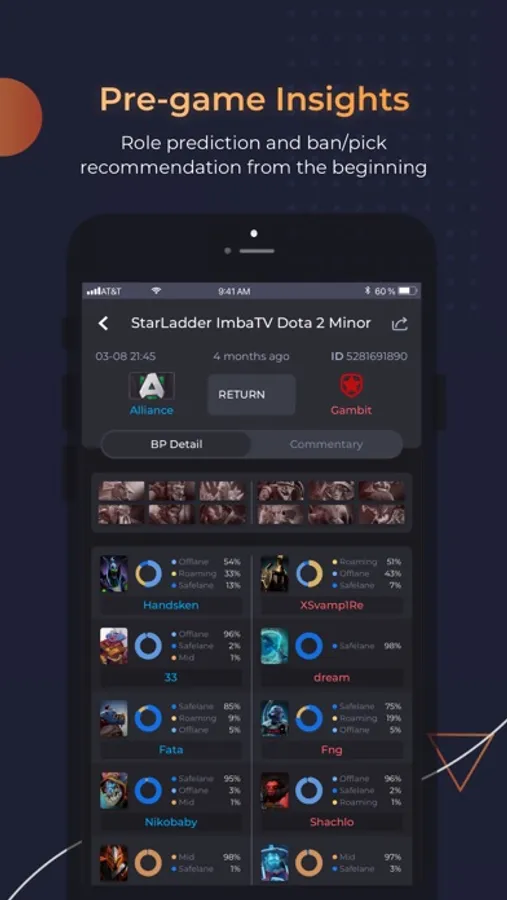 - Pre-game Insights: Role prediction and ban/pick recommendation from the beginning.