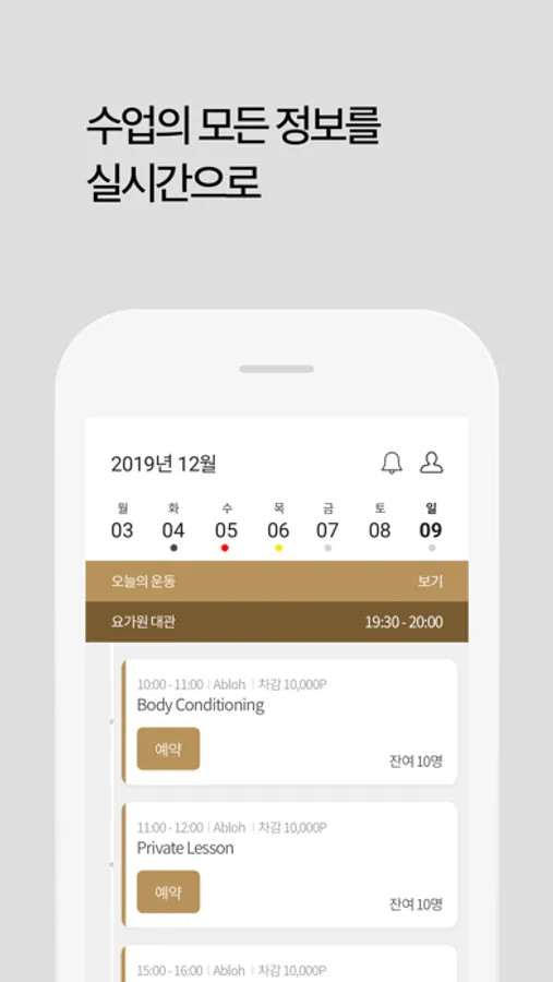 · 원하는 수업의 예약 현황을 간편하게 관리할 수 있습니다.