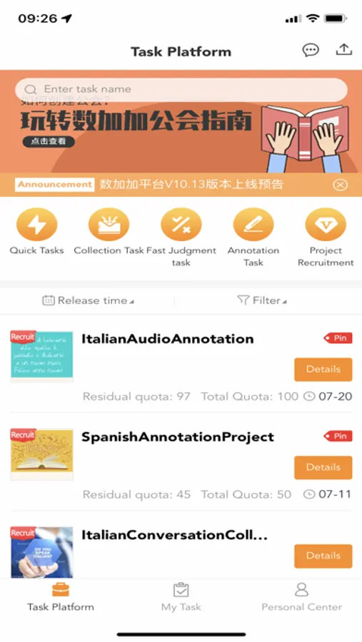 数加加是由专注于人工智能数据服务的数据堂公司打造的一款众包平台。