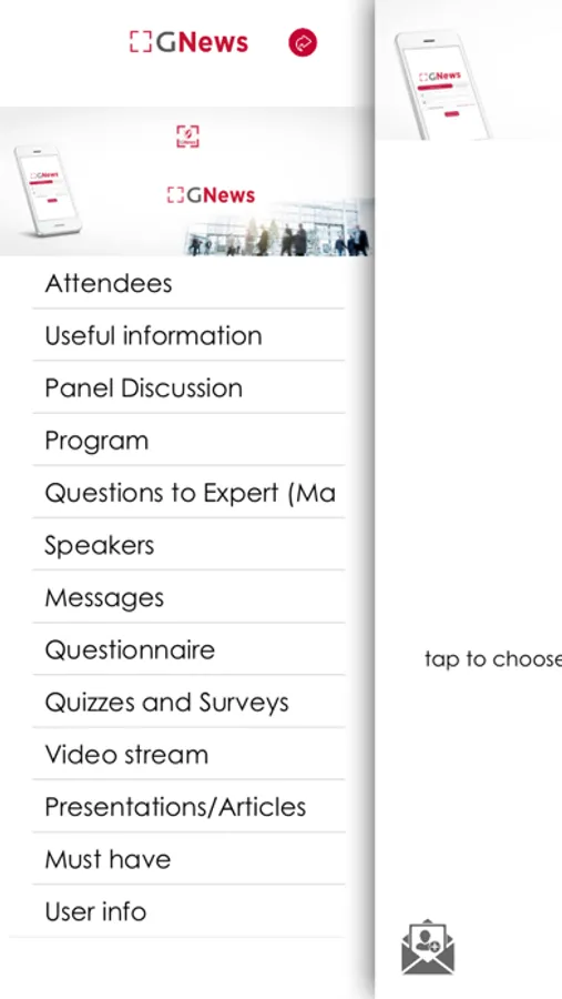 The application User may participate in quizzes and surveys, and download materials and presentations.