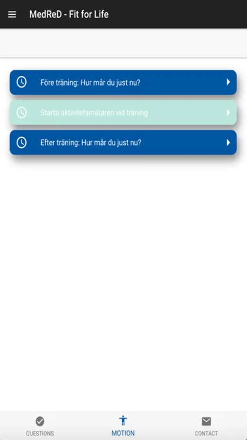 Easy and user friendly mobile application for collecting and storing eQuestionnaires and Patient-Reported Outcome Measures (PROMs) for increased quality of care and systematic follow-up of post-surgical recovery. MedReD is 100% customized by VizzDAT for each purpose and can be developed in multiple languages. Main features include personal and safe login, push notifications and communication via the App (sms, telephone, email, chat), encryption of all data traffic. MedReD can be integrated with the VizzDAT visualization tool VIZ for superior administrator overview incl. graphs and statistical analyses.