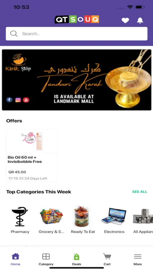 Qt- souq is online International shopping store in Qatar. Shop from a wide range of products from Qatar, India and USA at your door steps. Checkout all the latest trends from Mobiles,Televisions, Refrigerators, Electronics, Groceries, Men fashion, Women fashion, Kids wear, Home Appliances, Air Conditioners and many more other products from top brands. Check our deals of the day section and get great deals on various products everyday. Same day delivery and Cash on Delivery Available on eligible products.