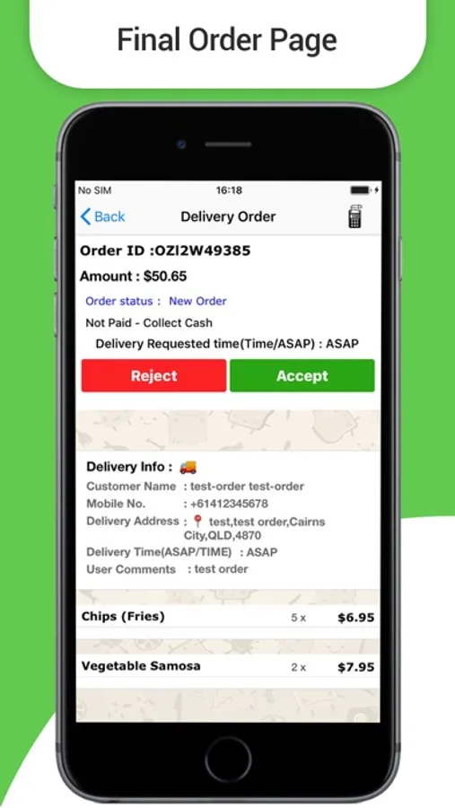 • Access the order details, accept and cancel the orders (Request to OZ)