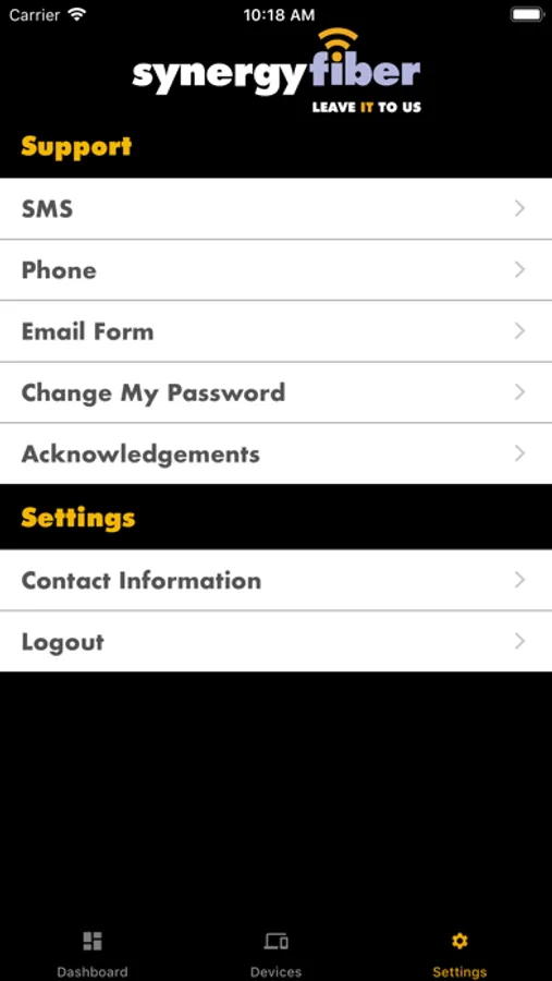 Synergy Fiber’s mobile app allows residents at supported apartment complexes to turn their mobile phone into a key to access their unit and control their thermostat (where supported). This app also allows residents to effortless get in contact with our support desk, and register devices on our network to ensure proper function when it comes to wireless printing, and controlling your television from your phone.