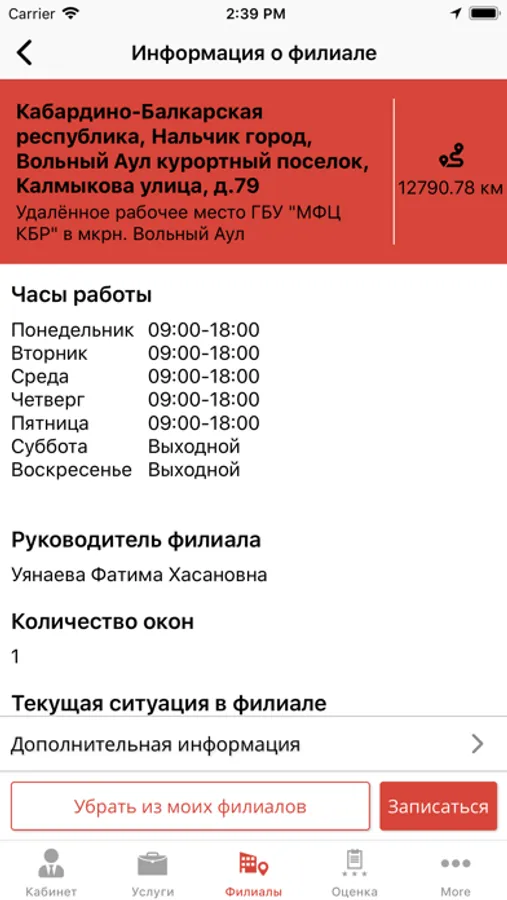 В данном приложении Вы также можете ознакомится с подробной информацией об адресах центров и офисов, а также с их режимом работы.