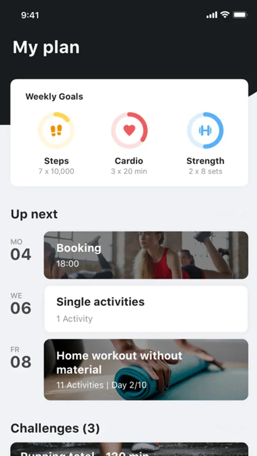 Also, you will have your body values and data inside the app, so you can easily keep track of your personal progress. From strength training to cardio, nutrition and appointment booking - our app functions as your personal trainer who constantly supports and motivates you.