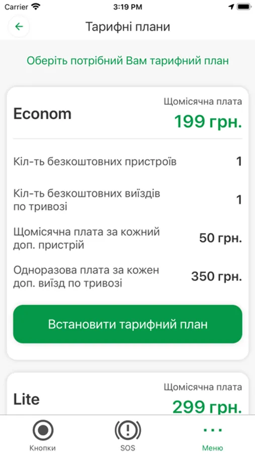 - Единоразовая плата за каждый доп. выезд по тревоге - 350 грн./мес.