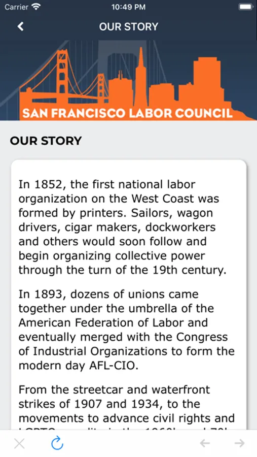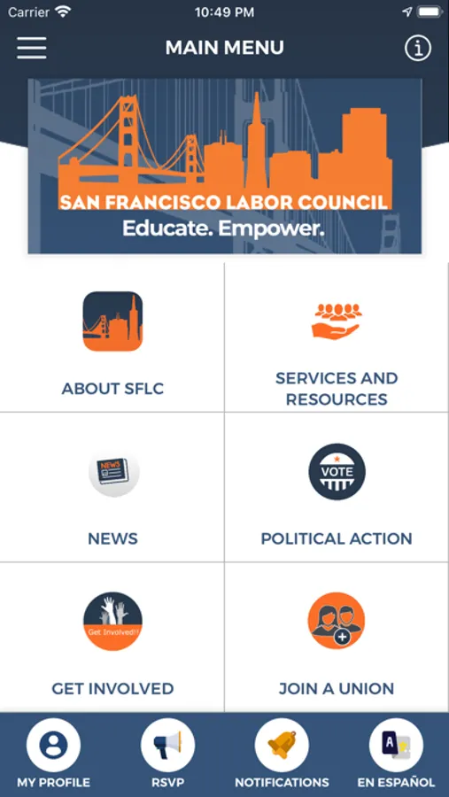 The SF Labor Council mobile app is designed to educate, engage and empower our Members. This app is to be used as a tool to better understand the benefits available to our Members working in the Industry. This app is only available to SF Labor Council Members.