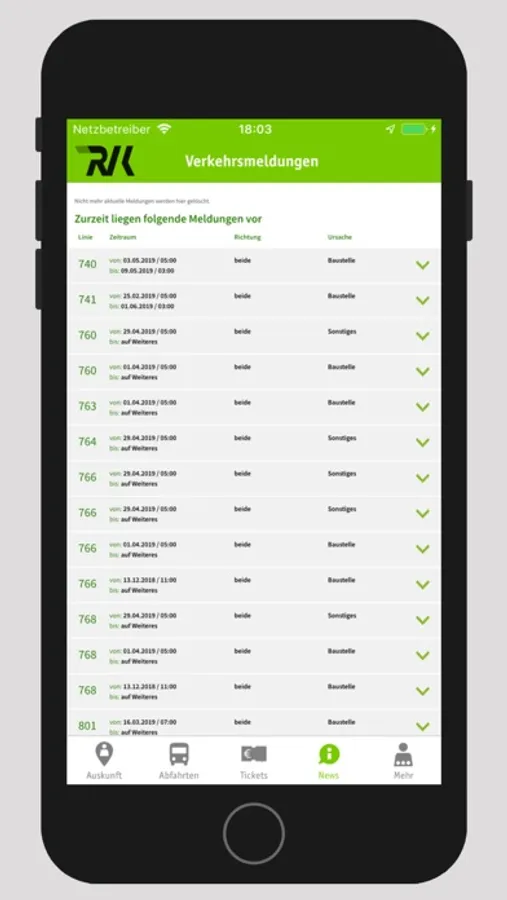 RVK - Verkehrsmeldungen