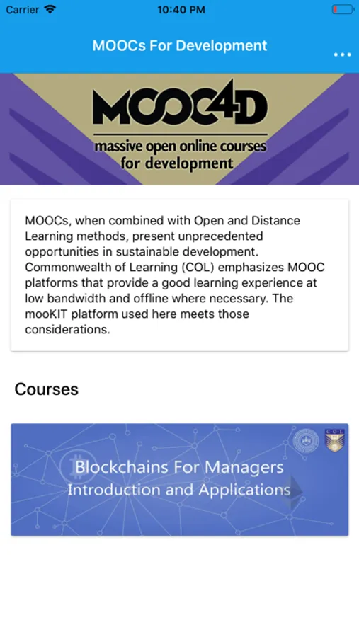 This app lets you access all the courses offered on mooc4dev. All the course content like videos, announcements, resources can be consumed. You can take quizzes and submit assignments. You will be able to participate in Forums and Hangouts. You will receive notifications when new lectures, quizzes and assignments are released. You can also access the courses when offline.