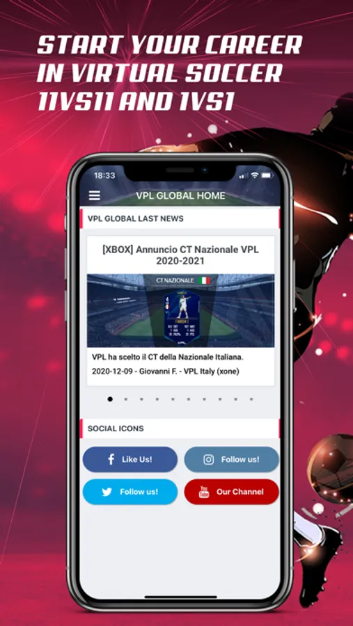 VIRTUAL PROFESSIONAL LEAGUE is the platform where 11vs11 and 1vs1 virtual soccer becomes e-Sports. Through our platform, we provide an immersive experience for Videogamers passionate about Virtual Soccer.
