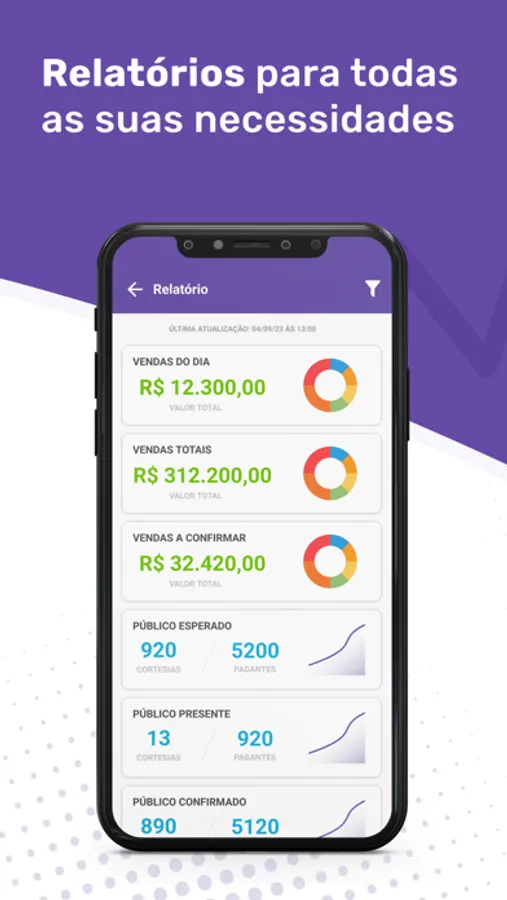 Tenha acesso imediato a relatórios detalhados que mostram as vendas de ingressos em tempo real. Monitore o desempenho das vendas e ajuste sua estratégia conforme necessário.