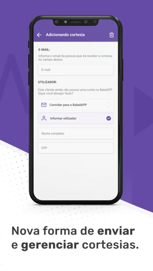 Agora você pode enviar convites para seus convidados de forma intuitiva e rápida. Basta convidá-los por e-mail ou informar todos os dados para que eles recebam as cortesias de forma rápida e segura. Além disso, eles podem usar nosso APP de cliente para acessar o evento.