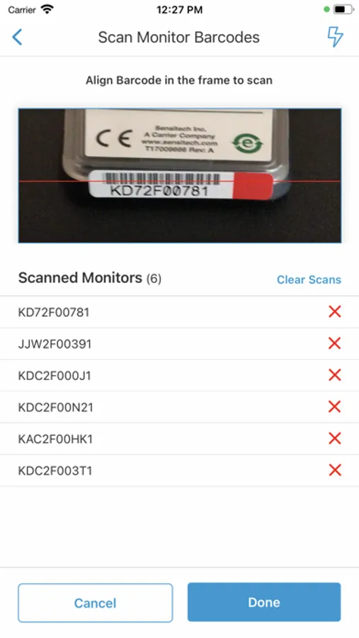 • If the time/temperature of your package has exceeded its limits, you will see the X icon, indicating an alarm (up to 6) has triggered. Follow the standard operating procedures (SOPs) set by your organization.