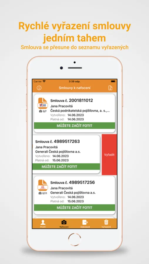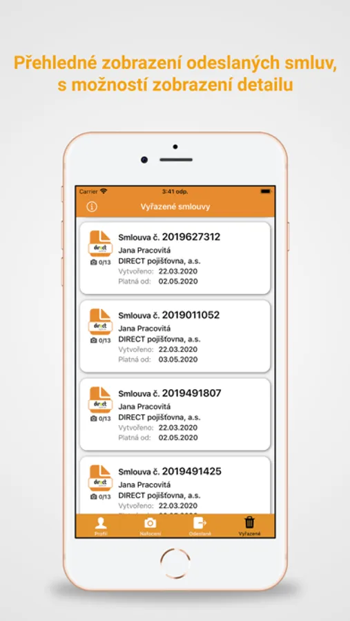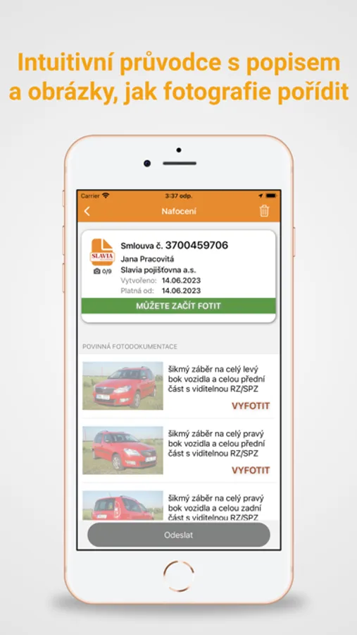 - aplikace sama odesílá fotografie vozidla přímo do dané pojišťovny