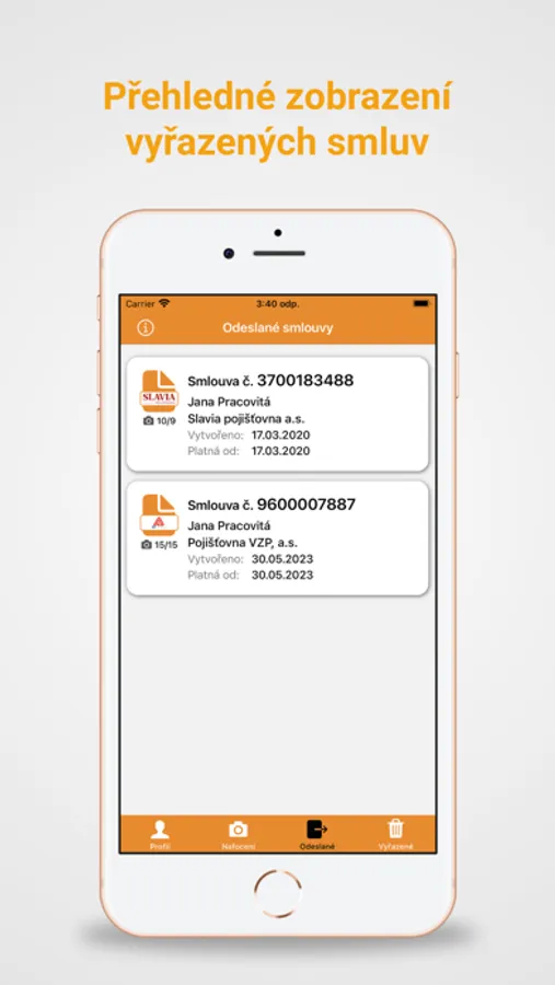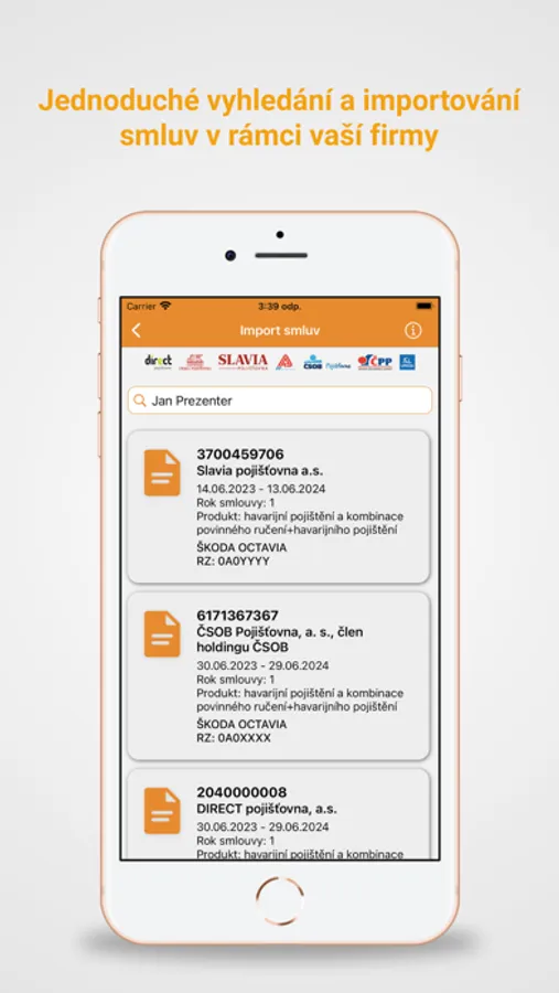 - údaje o smlouvě se do telefonu automaticky importují z Ignáce
