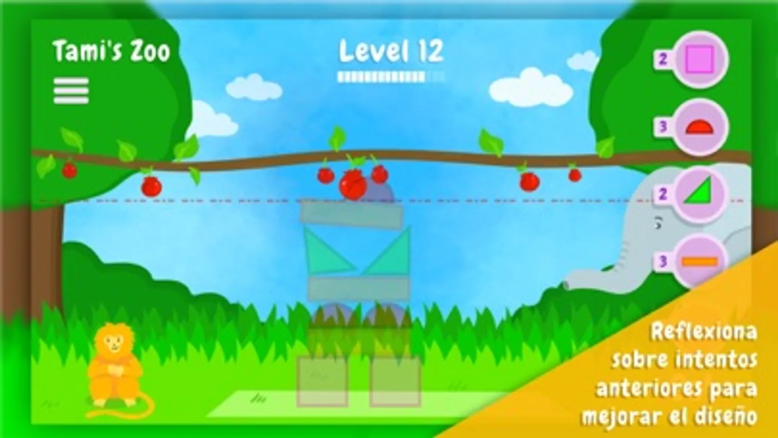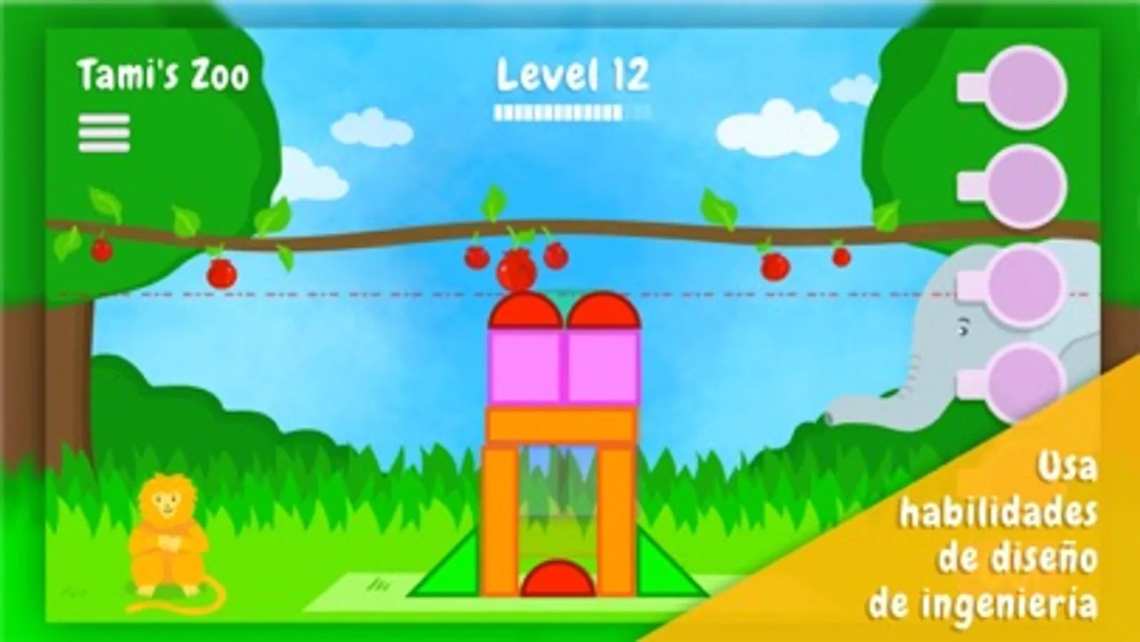 ¡Es la hora del almuerzo y Tami, la tití león de cabeza dorada, tiene hambre! Ayuda a Tami a alcanzar la deliciosa fruta construyendo una torre. ¡Pero cuidado! Otros animales pueden hacer que la torre de Tami se derrumbe.