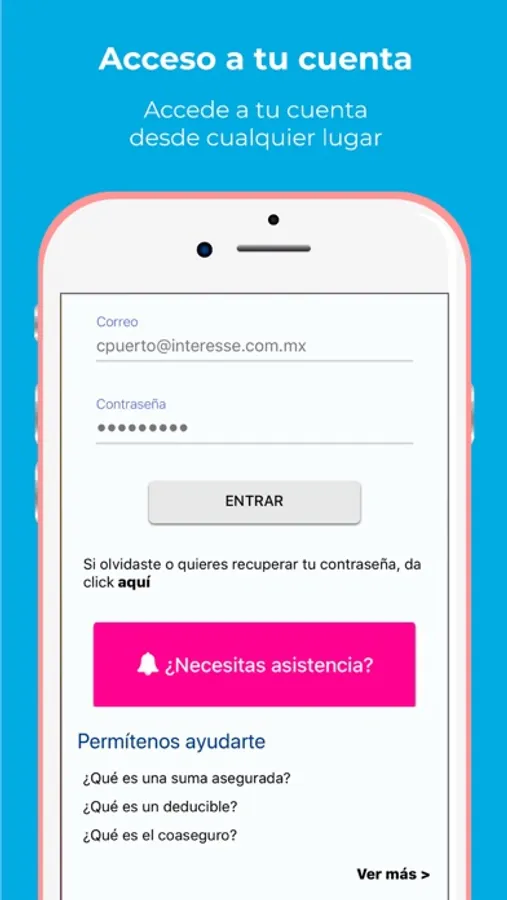 Interesse 365 es la Aplicación Móvil de servicio para los asegurados de Interesse. Con ella tendrás siempre al alcance de tu mano toda la información de tus seguros y herramientas de gran utilidad como: Consulta de siniestros, designación de beneficiarios, acceso para tus familiares, consulta tus credenciales, cotiza otros seguros y beneficios.