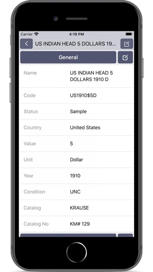 You can also study your coins in more detail by adding their images, descriptions and characteristics to the mobile app.